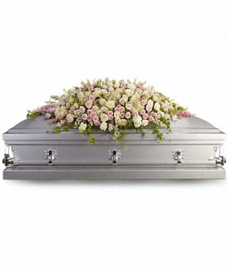 Our local florists hand-design the Always Adored Casket Spray, which can be pre-ordered and delivered on the same day. The flowers used in our arrangements are handpicked and fresh when they arrive at the memorial service. Someone close to the deceased can send this arrangement directly to the funeral home.